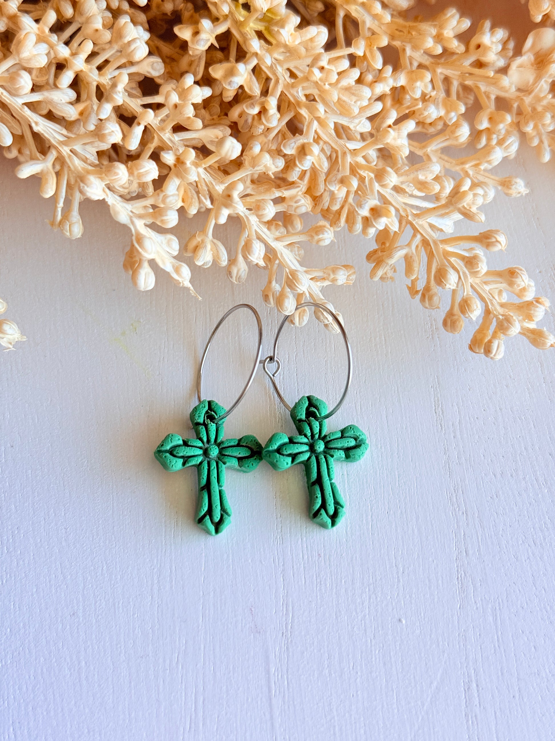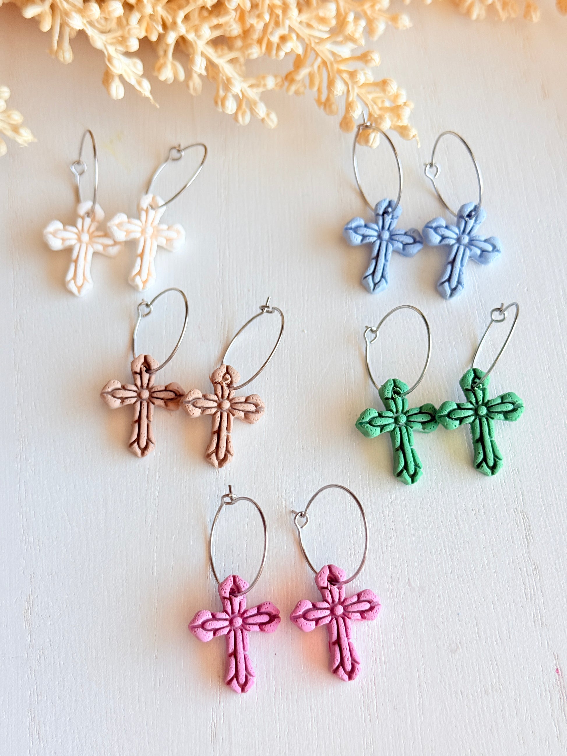 Celebrate faith, renewal, and the beauty of spring with these handmade Polymer Clay Easter Cross Hoop Earrings. Thoughtfully crafted with care, each pair features delicate cross designs made from high-quality polymer clay, symbolizing hope and new beginnings.